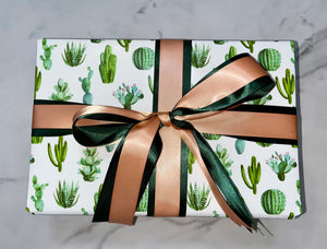 Wrapped by hand in our signature cactus paper, finished with cloth ribbon, and accompanied by a handwritten card sealed in a metallic gold envelope. Ready to gift.