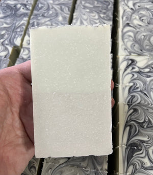 Madera Canyon. Tallow soap with goat milk from SuSu, Babassu oil, colloidal oatmeal and jojoba oil. Scented with rosemary, peppermint and spearmint essential oils. Colored with Dead Sea mud and French green clay. Marbling on top is activated charcoal and olive oil. Coconut-free and castor-free. #youneverknewsoapcouldbelikethis #azsoapco #arizonasoapcompany #tucson