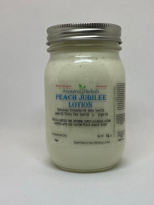 Meet Peach Jubilee - Same scent as the soaps with same name (its peachy and clean, even some men are digging this and I’m there for it). Vegan, enriched with jojoba oil, prickly pear seed oil and argan oil. My emulsifier & preservative are certified for use in organic products; the preservative is on Whole Foods list of accepted preservatives. I created the scent. The soaps and lotions have been selling about as fast as I put them out.
