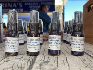 Our beautiful custom Fragrances in a perfume spray. The scent goes further because less is needed. Very often the waft lasts 24 hours or more (when applied to clothing - not your skin)!